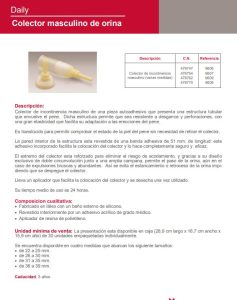 El colector Daily es de látex con un recubrimiento de silicona. El material resistente evita desgarros o perforaciones que puedan dar lugar a escapes de orina.